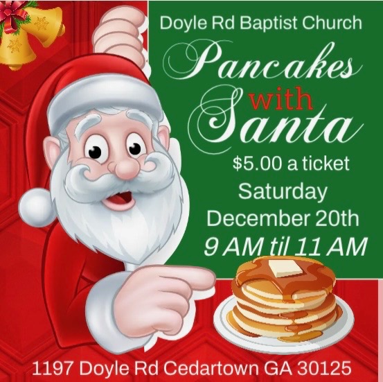 Have pancakes with Santa! Saturday, Dec. 20th from 9 a.m. – 11 a.m. at Doyle Road Baptist Church 1197 Doyle Road, Cedartown, GA 30125 Help support the youth of Doyle Road Baptist Church!! ScreenshotContinue Reading